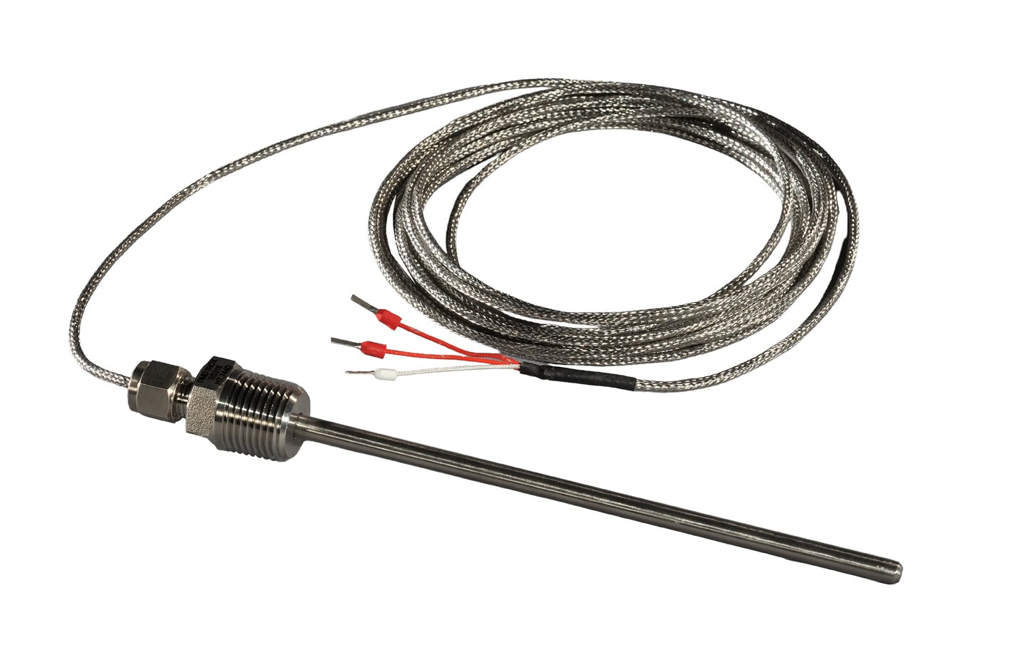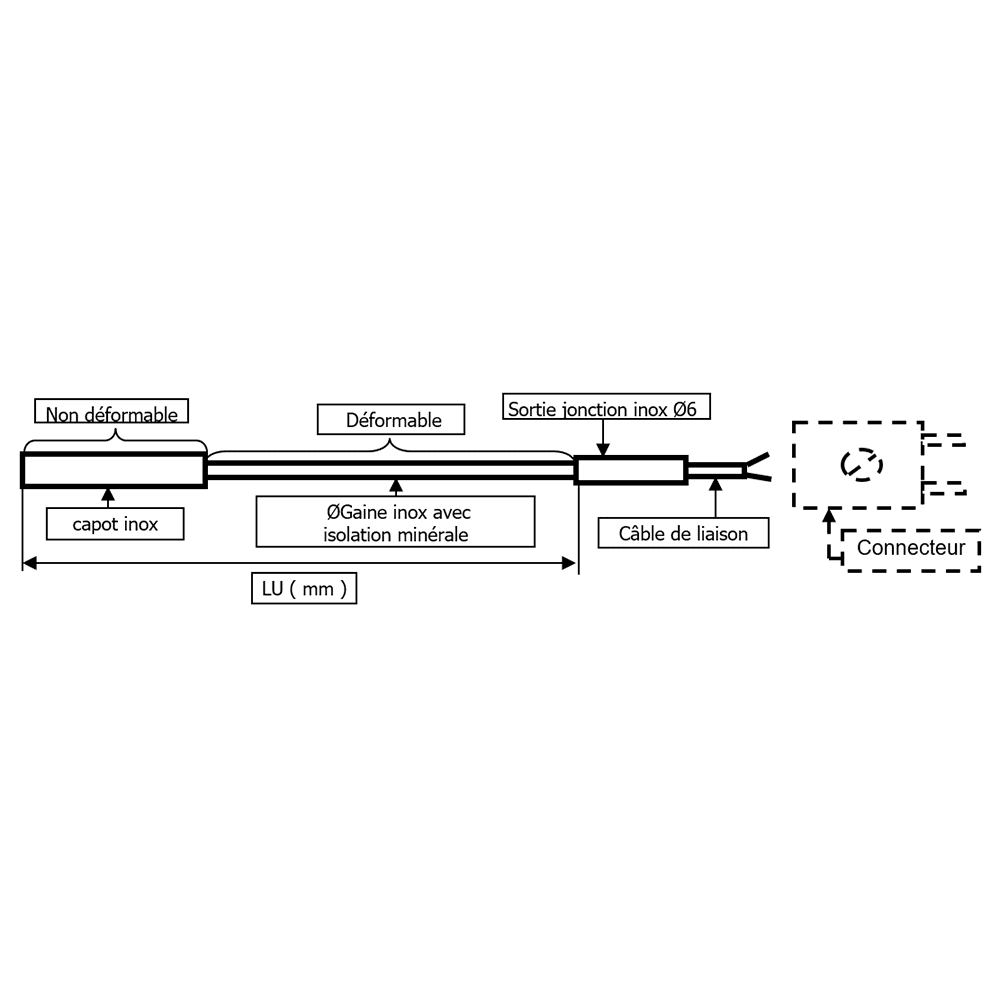 L’élément de détection PT100 est protégé par une gaine en acier inox 316L à extrémité bouchée.