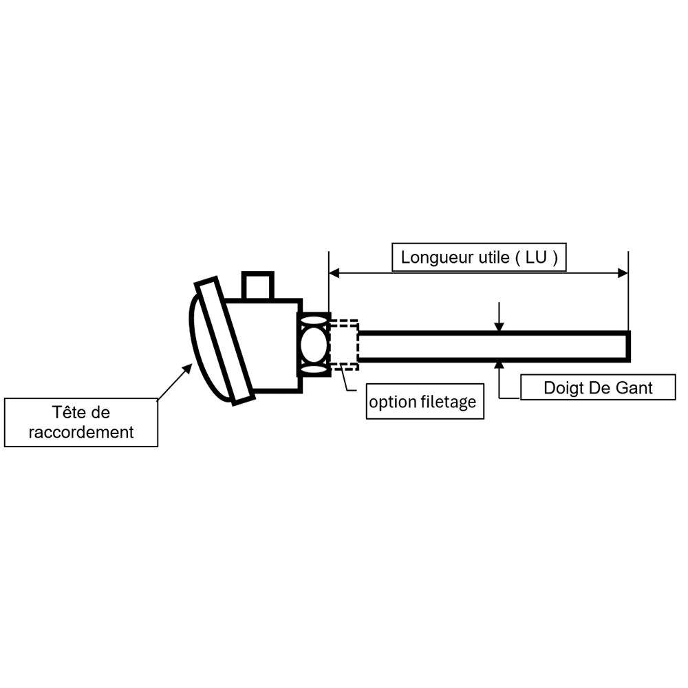 L’ensemble est constitué d’une gaine en acier inoxydable et d’une tête étanche.